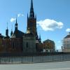 Riddarholmen Her finder man Riddarholmskyrkan med det flotte jern-filigran-tårn, som var kongelig begravelseskirke i tiden fra Gustav II Adolf til Gustav V. Kirken blev bygget i 1200-tallet og er Stockholms eneste bevarede middelalderlige klosterkirke. |