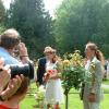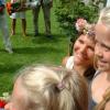 Kronprinsessen hilser glad og gerne på de mange børn, som overrækker blomster og tegninger.